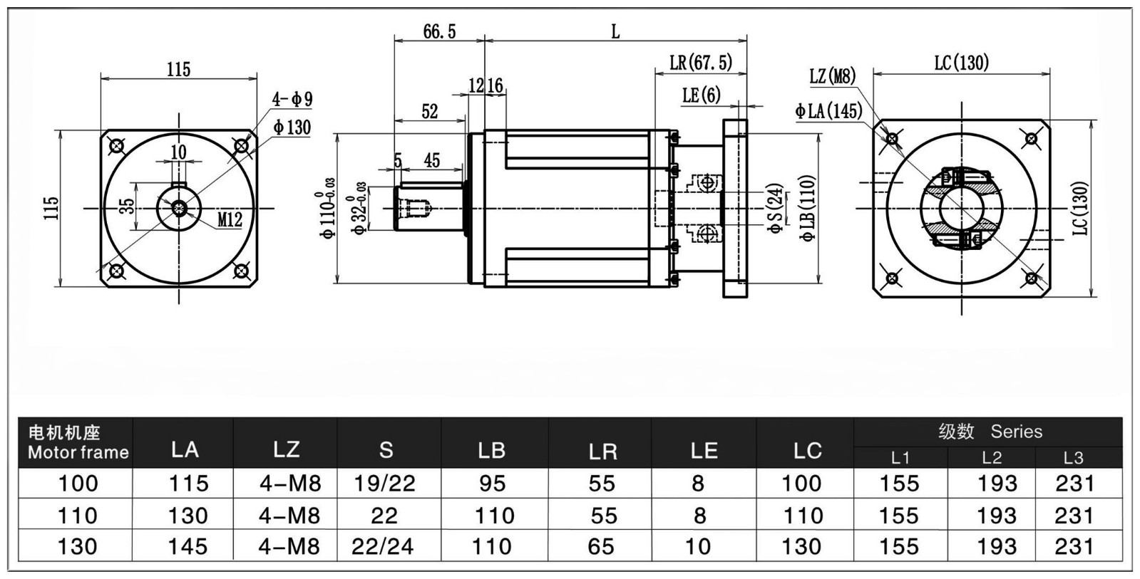 ●通过固定减速机部件,适合用作行星减速机。
